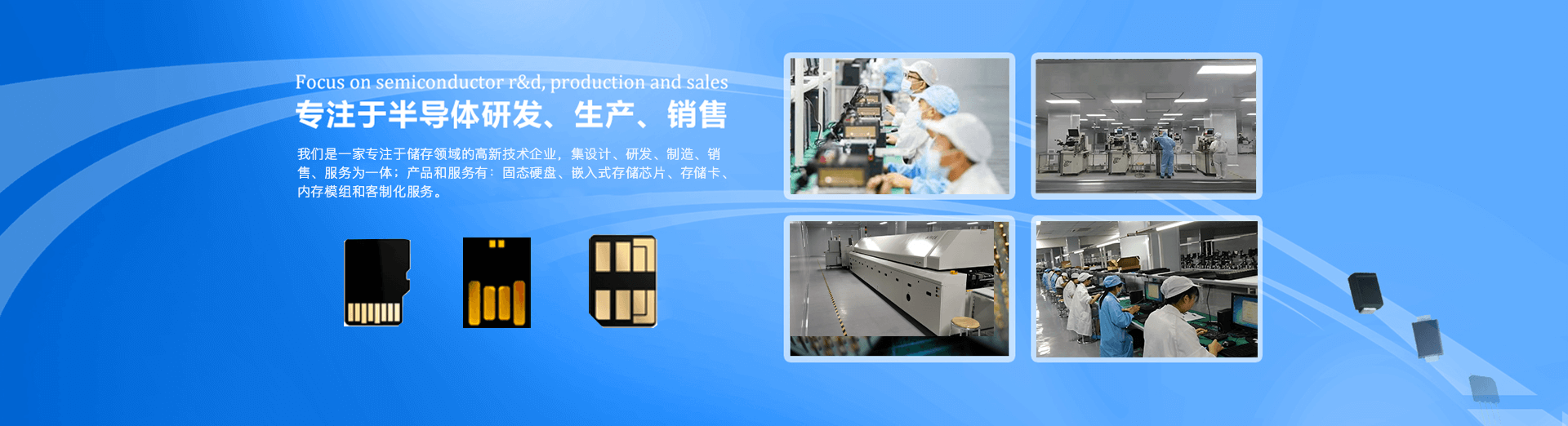 我們是一家專注于儲存領域的高新技術企業,集設計、研發、制造、銷售、服務為一體;產品和服務有:固態硬盤、嵌入式存儲芯片、存儲卡、內存模組和客制化服務。